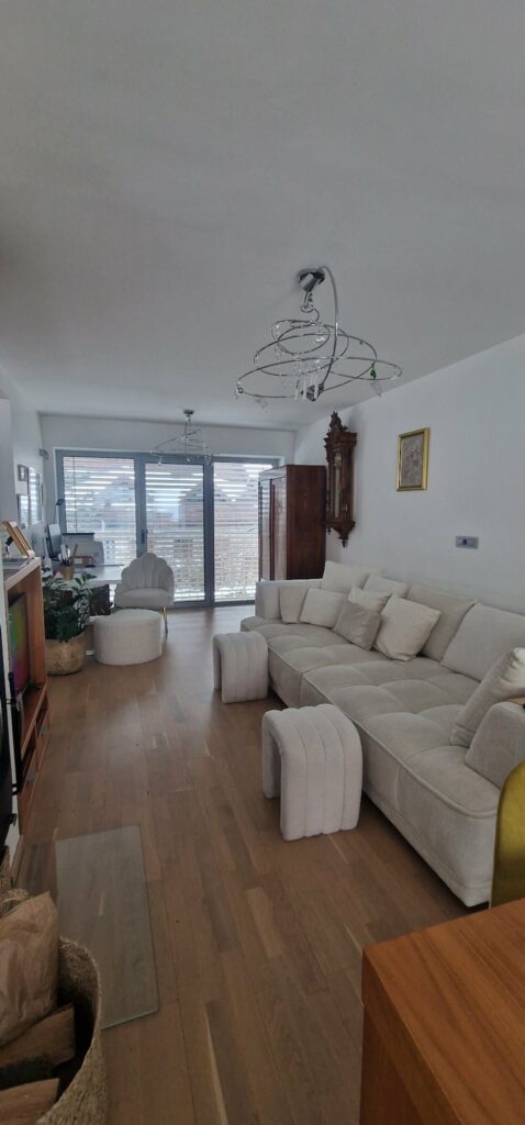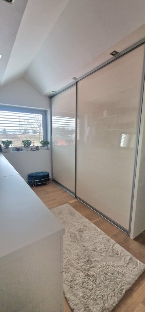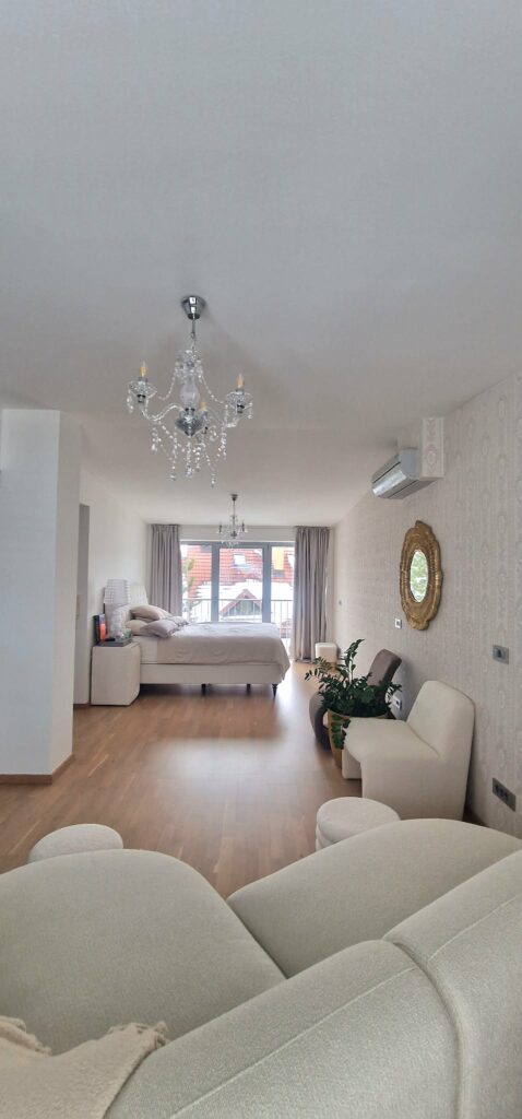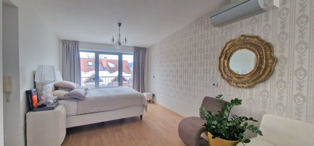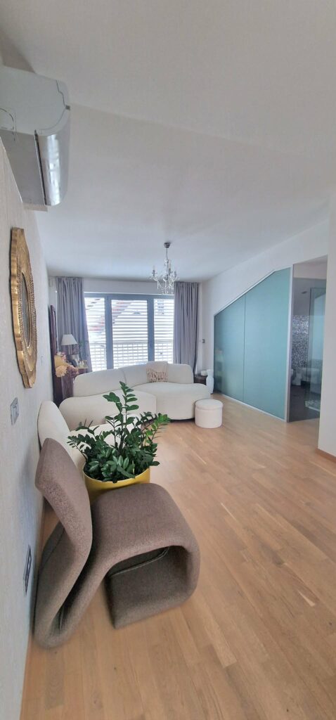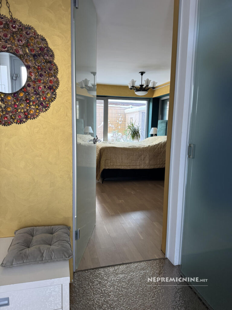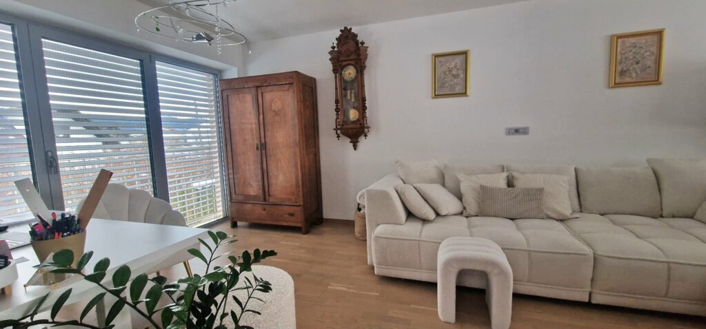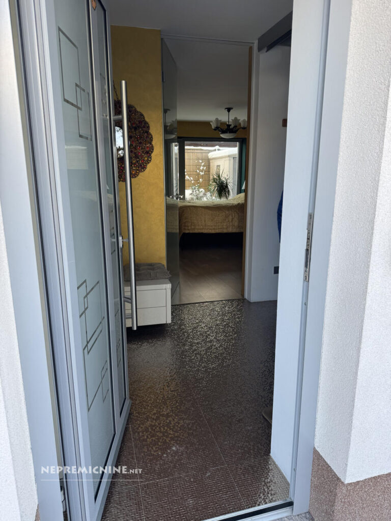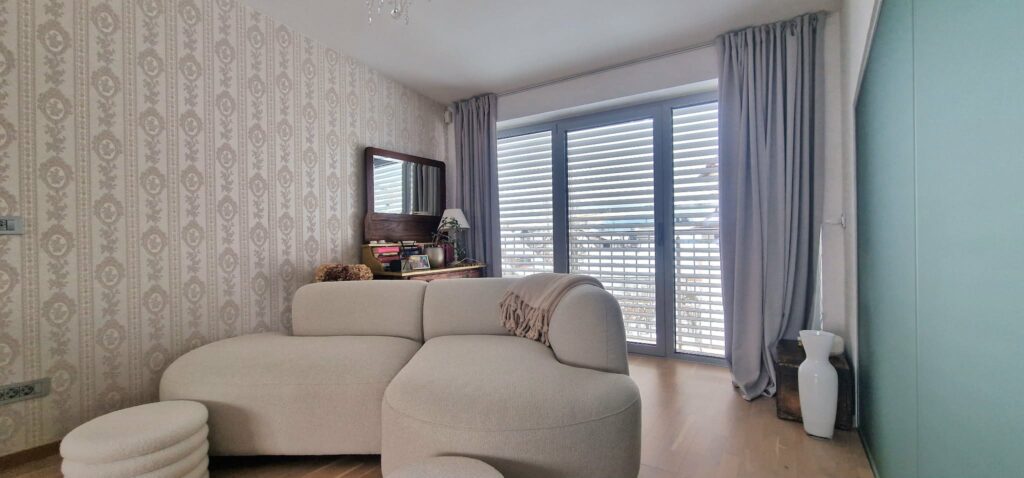 Vsa okna in balkonska vrata so izdelana iz kakovostnega aluminija in opremljena s troslojno zasteklitvijo, ki zagotavlja izjemno toplotno in zvočno izolativnost. Zaradi tega je bivanje v enoti izredno mirno, tiho in energetsko učinkovito, ne glede na dogajanje v okolici. Vgrajene so električne rolete z upravljanjem na tipko, ki omogočajo popoln nadzor nad svetlobo, zasebnostjo in dodatno zaščito pred pregrevanjem prostorov. Za dodatno udobje so v objektu nameščeni tudi komarniki, in sicer v vsakem nadstropju, kar omogoča brezskrbno zračenje brez nezaželenih insektov. Celoten sistem senčenja in zasteklitve je premišljeno zasnovan za visoke bivalne standarde ter ustreza pričakovanjem tudi najzahtevnejših kupcev.